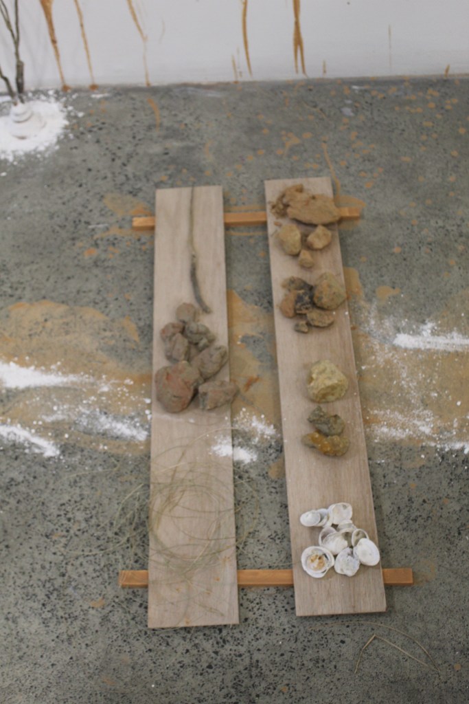 This installation sits as an iteration in a year long series of gallery installations and site visits to Northland wetland, along the Turanga river.