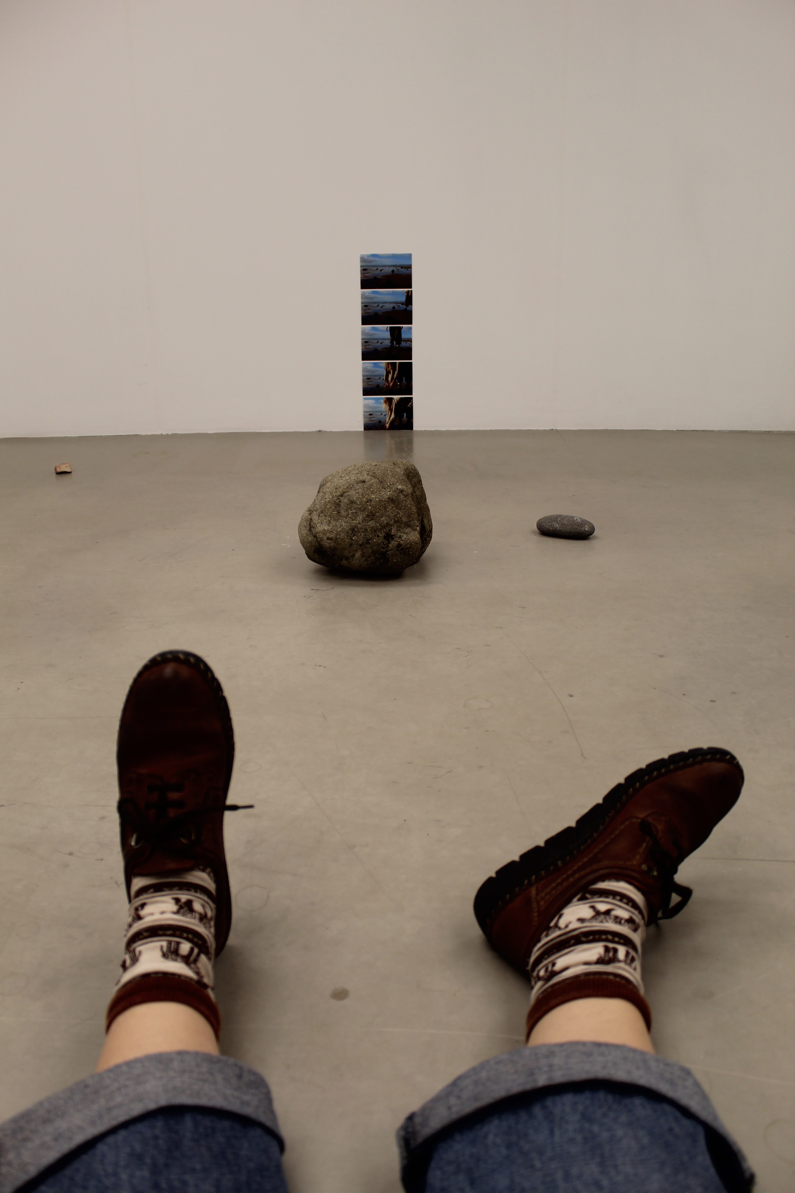 For this installation piece I wanted to introduce photography to initial idea of revealing the space between the collector and the collection. Photographing this process gives context to the act of collection and to the land the stone, rock or boulder is collected from.