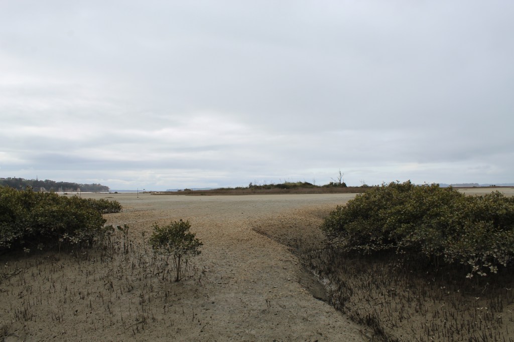- Mangrove shoots from the wetland at low tide.