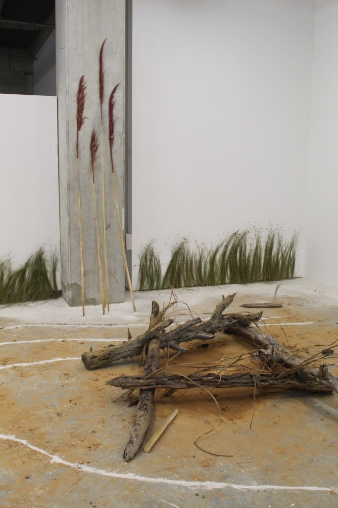 This latest installation ‘Whistling River‘ November 2023, maps sound in the environment as I navigate my way through the coastal wetland. Encountering this installation an individual is met by material from land many tend not to venture into. Wetlands may lack worth to other environments along the coasts. This should not be the case.